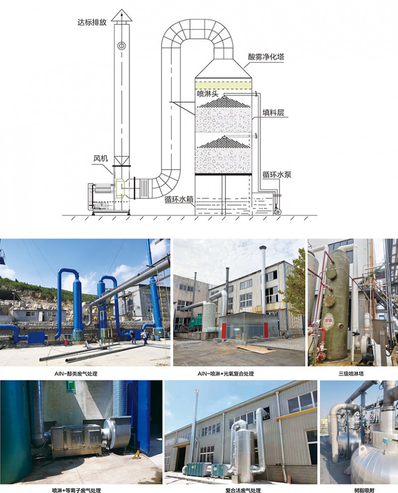 廢氣凈化噴淋塔主要的運(yùn)作方式是廢氣由風(fēng)管引入凈化塔,經(jīng)過填料層,廢氣與氫氧化鈉吸收液進(jìn)行氣液兩相充分接觸吸收中和反應(yīng),廢氣經(jīng)過凈化后,再經(jīng)除霧板脫水除霧后由風(fēng)機(jī)排入大氣。吸收液在塔底經(jīng)水泵增壓后在塔頂噴淋而下,回流至塔底循環(huán)使用。凈化后的廢氣達(dá)到地方排放標(biāo)準(zhǔn)的排放要求,低于國(guó)家排放標(biāo)準(zhǔn)。