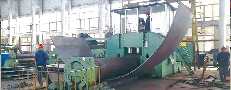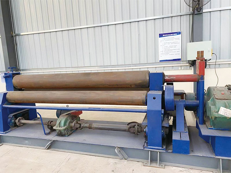 簡(jiǎn)析卷板機(jī)的工作原理及應(yīng)用范圍卷板機(jī)是對(duì)板料進(jìn)行連續(xù)點(diǎn)彎曲的塑形機(jī)床,具有卷制O 同的形狀卷板機(jī)規(guī)格平整的塑性金屬板通過(guò)卷板機(jī)的三根工作輥(二根下輥、一根上輥) 之間,借助上輥的下壓及下輥的旋轉(zhuǎn)運(yùn)動(dòng),使金屬板經(jīng)過(guò)多道次連續(xù)彎曲(內(nèi)層 壓縮變形,中層不變,外層拉伸變形),產(chǎn)生塑性變形,卷制成所需要 的圓筒、錐筒或它們的一部分。 卷板機(jī)的工作原理是卷板機(jī)上輥在兩下輥中央對(duì)稱(chēng)位置通過(guò)液壓缸內(nèi)的液壓油作用于活塞作垂直升降運(yùn)動(dòng),通過(guò)主減速機(jī)的末級(jí)齒輪帶動(dòng)兩下輥齒輪嚙合作旋轉(zhuǎn) 運(yùn)動(dòng),為卷制板材提供扭矩。借助上輥的下壓及下輥的旋轉(zhuǎn)運(yùn)動(dòng),使金屬板經(jīng)過(guò) 多道次連續(xù)彎曲,產(chǎn)生塑性變形,卷制成所需要的園筒、錐筒或它們的一部分。